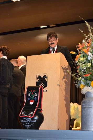 Präsidentin NWSJV Karin Ramseyer und Jörg Pongratz Präsident Jodlerchörli Deitingen bei der Begrüssung anlässlich Übergabe Veteranen-Abzeichen